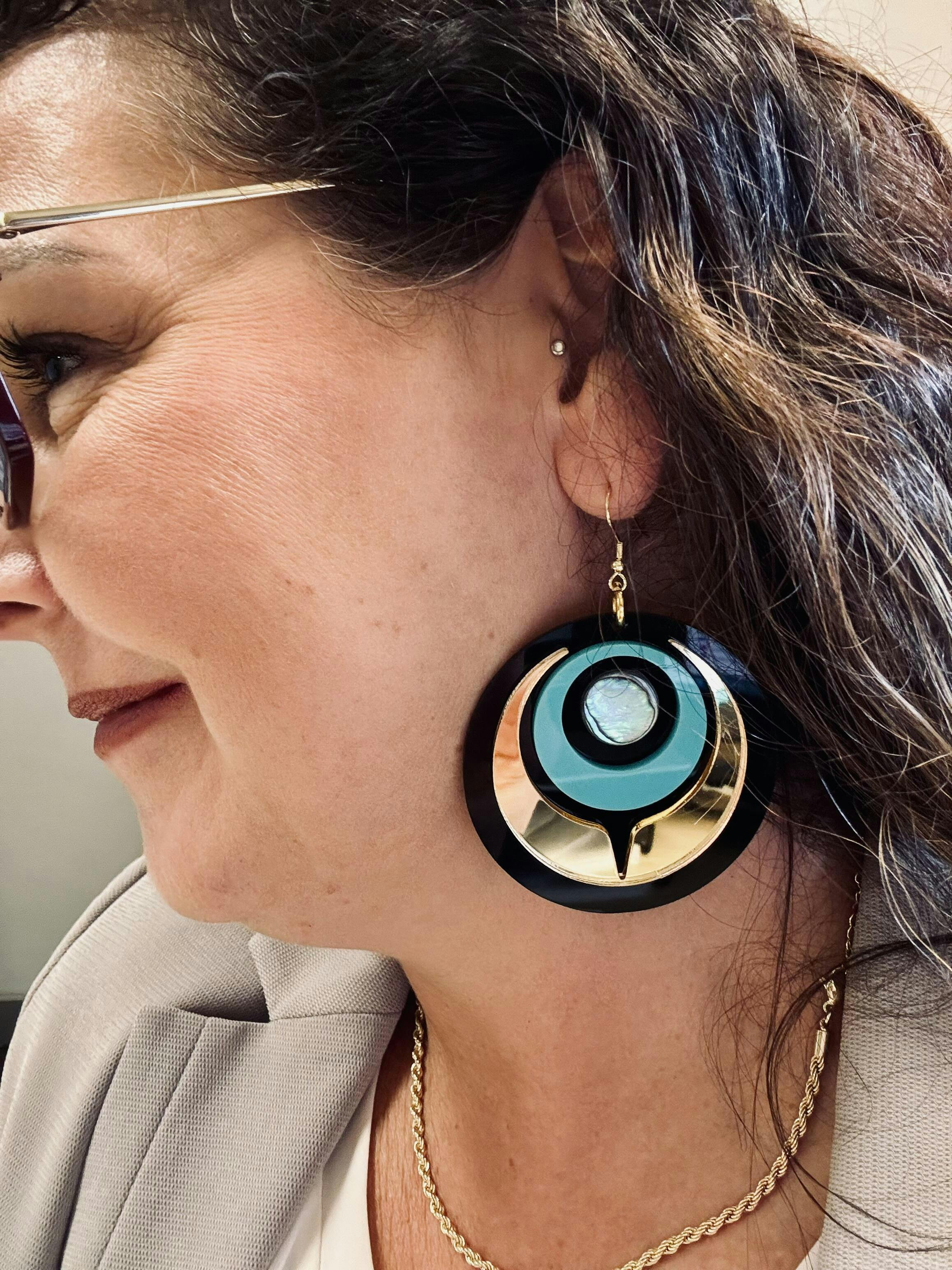 Inspired by the wisdom and intuition of the owl, these dual-layer earrings pay witness to their knowing stare and will be sure to pull an enchanting gaze or two. Many cultures consider the owl to be messengers and they act as a reminder to trust your instincts and listen to your inner voice. Choose from one of six colors, each framed in black acrylic and popped with an abalone gem.